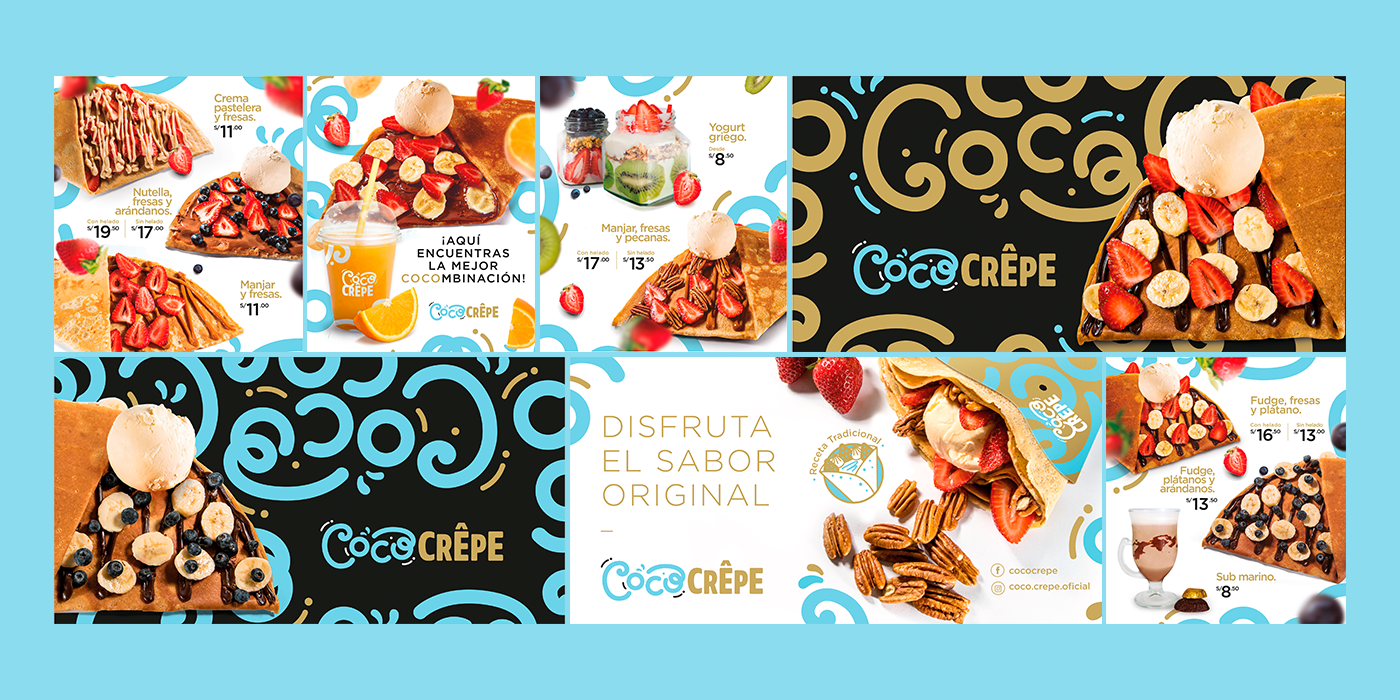 This project focuses on the creation of a concept and visual identity for Coco Crêpe, a Franco-Peruvian creperie that blends the best of two worlds: the tradition of the original French crêpe and the authentic flavors of Peruvian ingredients. At Coco Crêpe, every bite is a cultural encounter, where the delicacy of the French recipe meets the unique notes of Peru, offering a culinary experience that celebrates this exquisite fusion of flavors. This branding was essential in establishing Coco Crêpe as one of the most renowned crêpe chains in Lima.